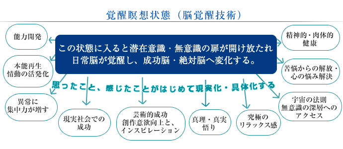 脳覚醒状態(潜在意識顕在化状態)に入れるとこのような効果があります。↓