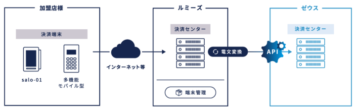 ルミーズ株式会社(以下「ルミーズ」といいます)は、このたび株式会社ゼウス(本社:東京都渋谷区、代表取締役:金子 雄一 以下「ゼウス」といいます)が提供する対面決済ソリューションとの連携を開始しました。連携にあたり、ルミーズ決済センターとゼウス決済センター間で接続を開始し、ゼウスは新たな対面決済ソリューションとして、ルミーズが展開する組込型マルチ決済端末「salo-01」を活用したマルチ決済ソリューションを提供し、実店舗における決済手段の拡充を図ります。