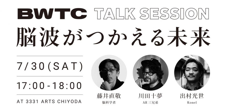 「BWTC Trade Week」の開催を記念して、脳波の未知なる可能性について、弊社代表藤井直敬、Konel代表の出村光世氏、AR三兄弟川田十夢氏を交えた、トークセッションが開催されます。