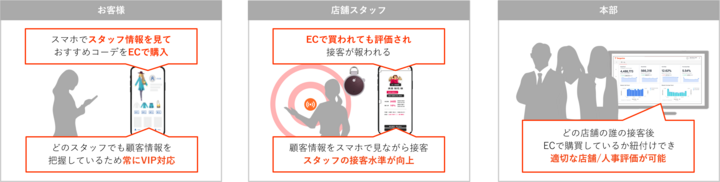 また、店舗で商品実物をみてその店舗のオンラインストアで購入する「ショールーミング」は消費者の利便性も高く拡大が求められてきましたが、店舗とオンラインストアの売上管理が別々であり店員のモチベーションアップにつながらないため導入が広がりませんでした。どの店舗のどのスタッフの接客から生まれた売上であることをオンラインストア側でも識別できる仕組みが求められてきました