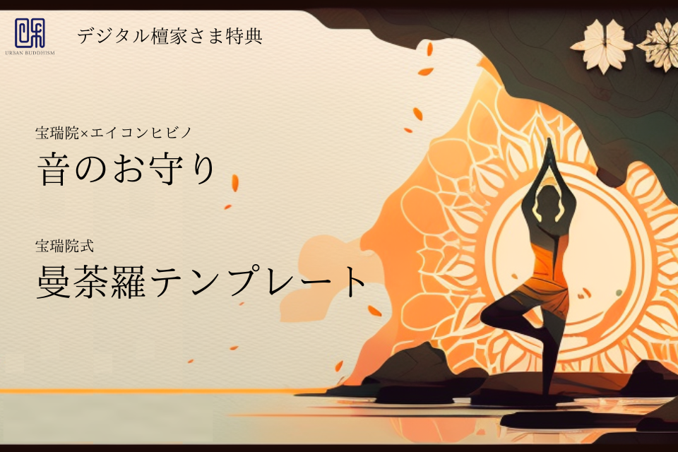 第一弾として、エイコンヒビノ氏監修のもと、心と体を整えるとされる528Hzの瞑想音楽「音のお守り」と、仏教の修行でも使われる曼荼羅(まんだら)を活用した「宝瑞院式曼荼羅テンプレート」を特典としてご用意させて頂きました。