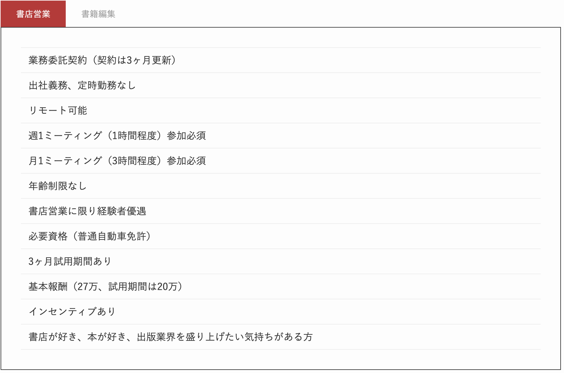 ・書店営業を経験したことがあるかたは優遇させていただきます。