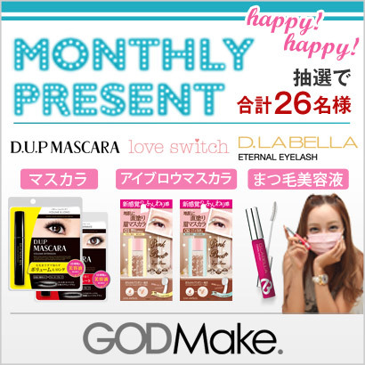 日本最大級のメイク動画サイト「GODMake.」では、7月2日より、合計で26名様に抽選でお好きな商品が当たるプレゼントキャンペーンを実施中です。アンケートに答えてご応募ください。