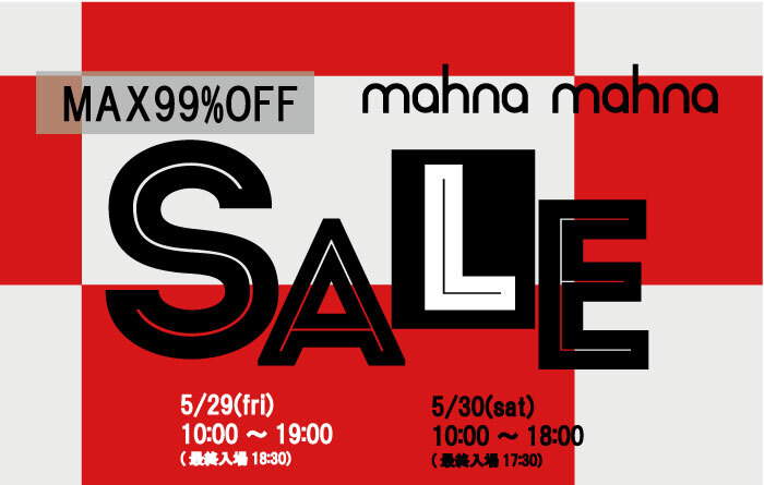 【マナマナ】5/29・30の2日間ー最大99%OFF!!のスペシャルブランドセール開催