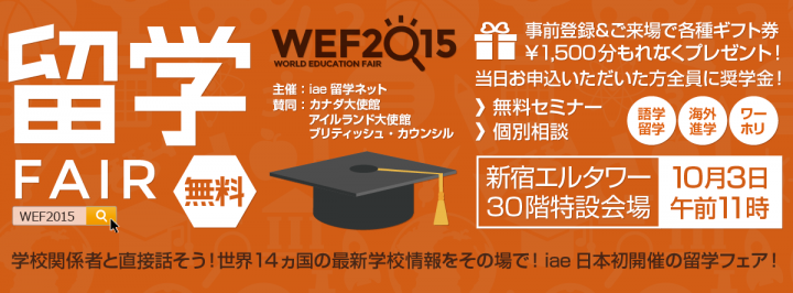 ついに日本上陸!iaeグローバル主催の留学イベント「WEF2015」~海外で実績を誇るiae グローバルが仕掛ける留学イノベーション~~