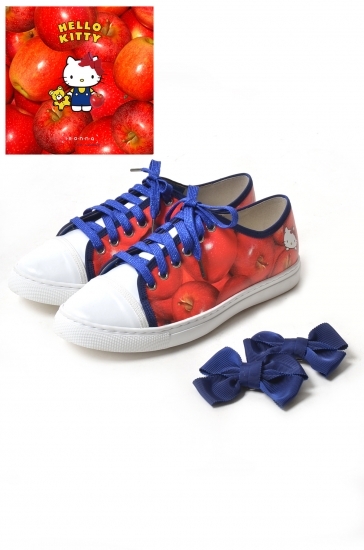 本革仕様でディテールにもこだわった特別な一足。マイメロディと、ハローキティの2デザイン。¥37,000(税抜)