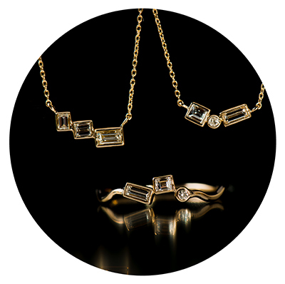 リズミカルなシェイプやこだわりのディテール、シンプルさと遊び心が着ける人をより輝かせるリングやネックレス。