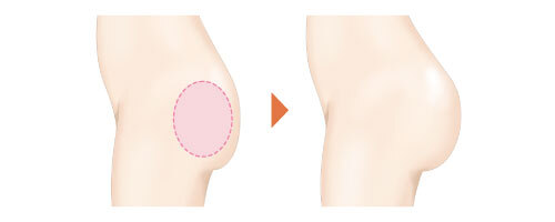 ・ご自身の脂肪やヒアルロン酸を注入することで、キュッと丸みのあるお尻を形成します。