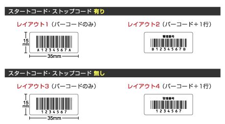 ※各サイズ バーコードのみとバーコード+1行(品名など)に加え、