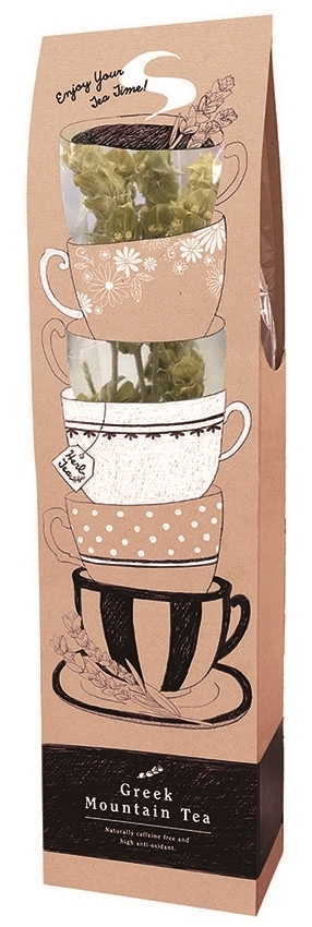 茎のままカップに入れるハーブティー 「Greek Mountain Tea(グリークマウンテンティー)」を 10/5(木)より全国一斉発売いたします。 山岳地域に育つことから「山のお茶」と呼ばれるハーブ・シデリティスは、 長い茎のままカップに入った見た目のインパクトは絶大ですが、 ハーブティーとしては、さわやかな香りと飲みやすいやさしい味わいです。 ギリシャなど地中海沿岸地域では、古代から現代まで飲み継がれています。 シデリティスを刈り取ったままの長い形でボックスに入れましたので、 長い大きなボックスは、一風変わったギフトとしてもおすすめです。 無香料・無着色・無添加でノンカフェインの新しいハーブティーとして、 ナチュラルなライフスタイルを目指す方々に、ぜひ注目いただきたい商品です。