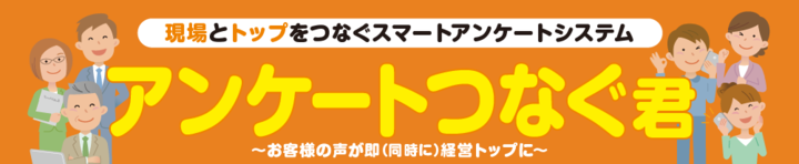 「アンケートつなぐ君」はスマホを活用して簡単に多くのお客様の声を集め、データとして社内全体で瞬時に共有、お客様の声をビジネスに活かすことができるアンケートシステムです。