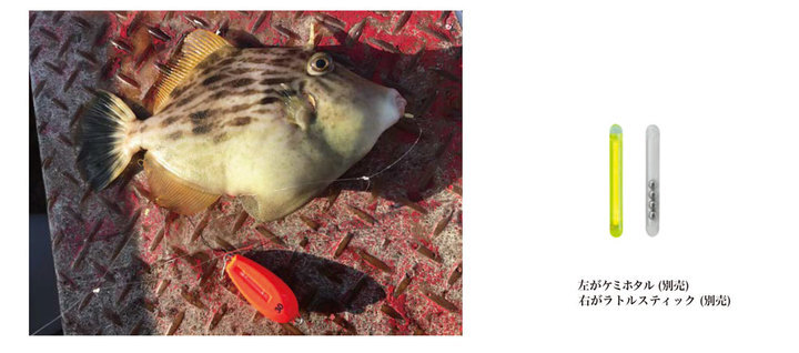 当製品は、様々な魚種を対象とする、エサ釣り集魚アイテムです。中でもカワハギをメインの対象魚としており、最大の特徴として集魚効果のある『ケミホタル25』または『寄ってこいラトルスティック25』(いずれも別売)を、本体にワンタッチ装着できるため、別途取り付けチューブなどの追加仕掛けが不要でアピール効果を追加できます。通常のオモリと異なり、オモリ自体に集魚能力を持たせております。形状は定番のナス型より流れに強い六角型を採用。テンビン仕掛けや胴突仕掛けのオモリとしてご使用いただけます。
