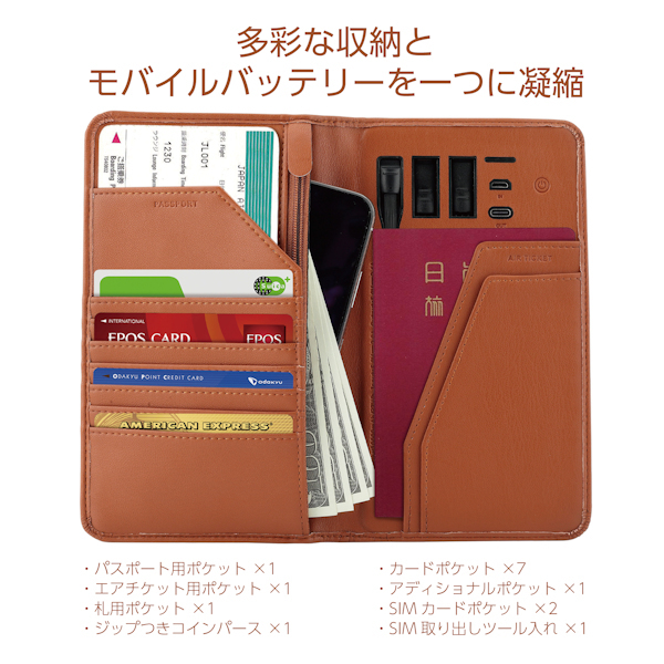 などをまとめて収納するウォレットと、スマホを安心して使い続けるためのの大容量バッテリーをひとつにしました。旅行中の必携アイテムをひとまとめにできるから、旅に軽快なフットワークが生まれます。