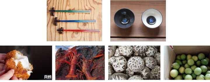 +工芸品(皿・盃:新潟県長岡市、箸:香川県小豆郡)