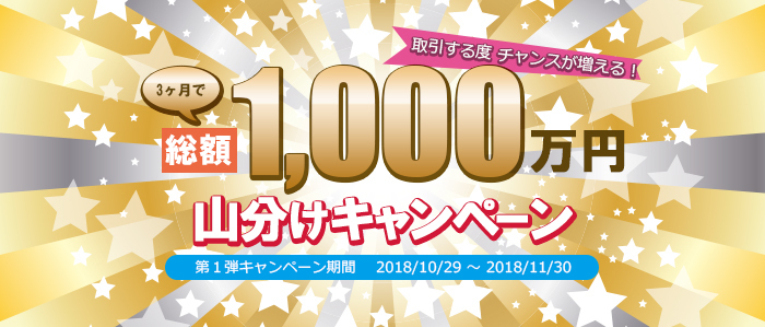 「みんなのFX」および「LIGHT FX」では、2018年10月29日(月)より「総額1,000万円山分けキャンペーン(第1弾)」を実施します。(要申込)