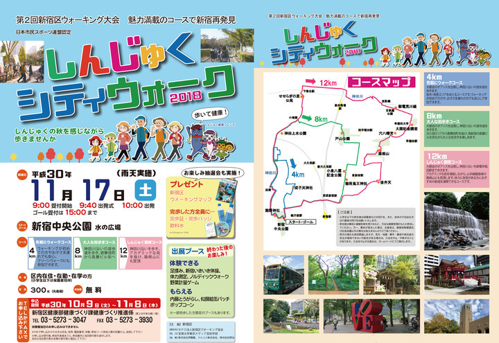 2018年11月17日(土)に実施する新宿区主催のウォーキングイベント「しんじゅくシティウォーク2018」に、宝塚大学東京メディア芸術学部の学生が協力しています。
