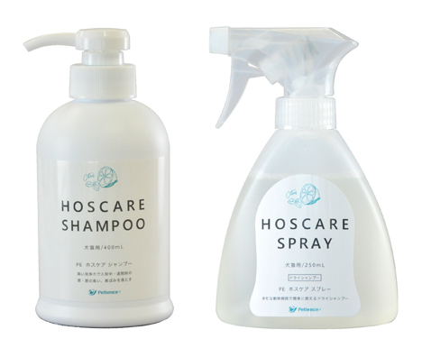 株式会社ペティエンスメディカル(所在地:東京都町田市、代表取締役:生田目康道)は、2018年12月3日に『PE ホスケア シャンプー』、12月17日に『PE ホスケア スプレー』を新発売いたします。(国産) 『PE ホスケア シリーズ』は、シャンプー専門メーカーが動物病院の診療を考えて開発したホスピタリティーケアのシリーズです。気になる動物病院特有のペットの汚れ・においに着目し、「簡単・きれい・スピーディー」に、入院中の犬・猫のデイリーケアや、退院時に飼い主様へお返しする前のにおいのケアにお使いいただけます。ご使用シーンに合わせて洗い流すシャンプータイプと、スプレー後タオルでふき取るタイプの2種類を取り揃えました。使い心地の良い爽やかなシトラスの香りです。