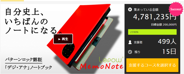 目標額達成!メモは『手書き』で!スマホ充電やロックも出来る『デジ・アナ』ハイブリッド・ノートを「machi-ya by CAMPFIRE」にて再公開中