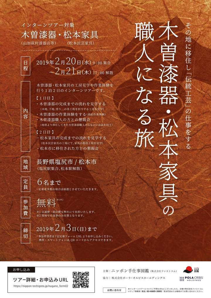 伝統工芸の職人を志す全国の学生に向けて― 木曽漆器・松本家具職人と出会うインターンツアー開催のおしらせ(2月20日―21日)