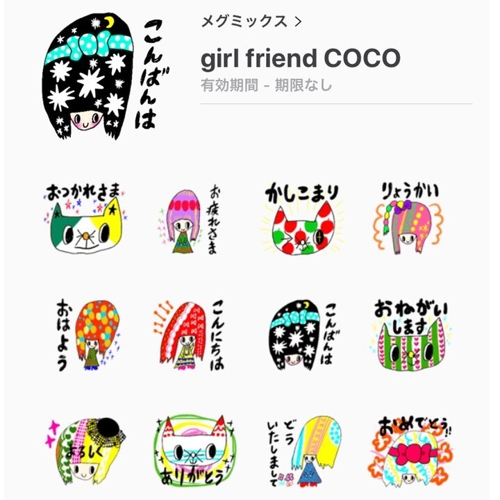主婦クリエーター・メグミックスは2019年2月7日にLINEスタンプ「girl friend COCO』を発売致しました。