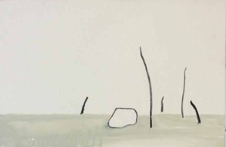 木村有沙の絵は、感情が投影される表現主義的でありながら静かな印象を与えます。画面に浮遊するあやういかたちは丸かったりささくれていたり。それは彼女の中にある刹那の心理状態が可視化され、「こころのかたち」になっているのかもしれません。