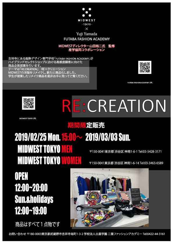 東京都武蔵野市吉祥寺の専門学校 古屋学園 二葉ファッションアカデミー(校長 吉野 たけし)は、2019年2月25日(月)15時~3月3日(日)の期間、渋谷区神南のMIDWESTTOKYOに於いて、Yuji Yamadaデザイナー 山田裕二氏監修による、MIDWEST商品をベースにリメイクした商品の、スペシャル展示販売イベントを実施致します。