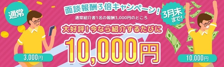 その他 :何人紹介頂いても上限なく「1面談につき1万円」をプレゼント。