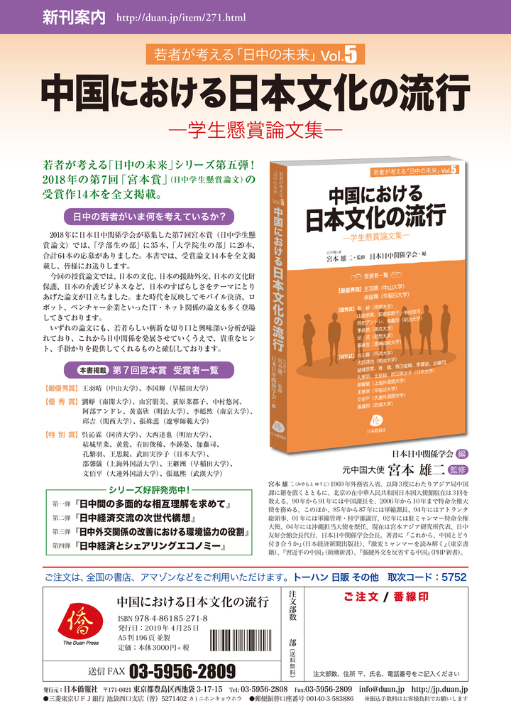 【最新刊】第5弾『中国における日本文化の流行』 http://duan.jp/item/271.html