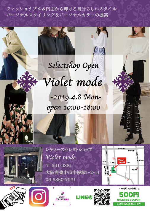 レディースファッションセレクトショップを運営するViolet mode(代表:吉岡芙美江)は30代、40代をターゲットに最新韓国ファッションを取り揃えるレディースファッションセレクトショップ「Violet mode」を新たに大阪北摂岡町商店街に出店致します。2019年4月8日(月)にオープンとなります。