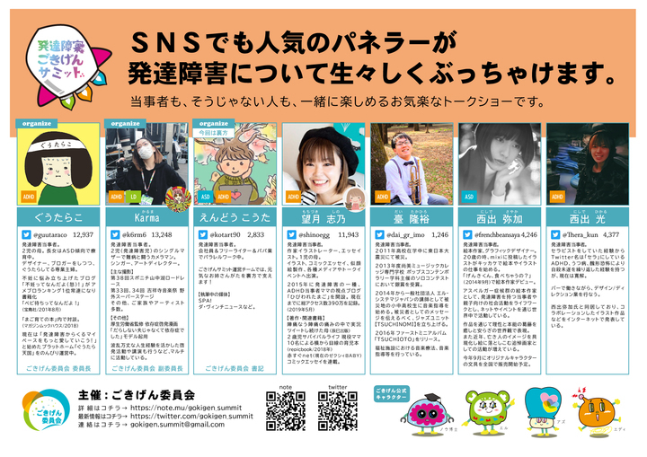 第1回「発達障害ごきげんサミット」を6月15日に吉祥寺で開催。発達障害のある生活を、SNSでも人気のパネラーが生々しくぶっちゃけます
