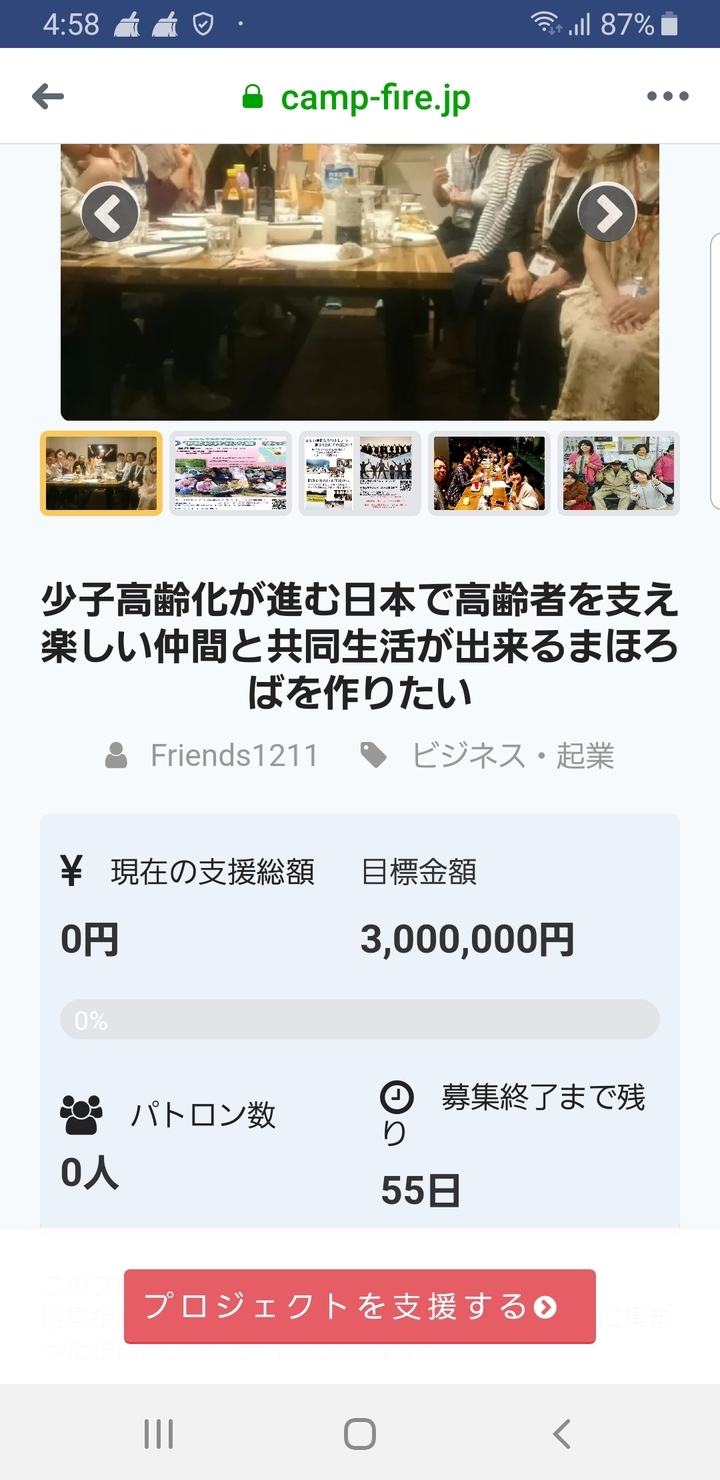 少子高齢化が進む中、特に高齢者を支える仕組みとして、同じ趣味をもつ仲間を作り、将来的に楽しく仲間と共同生活をする考えは、普及すると考えている。