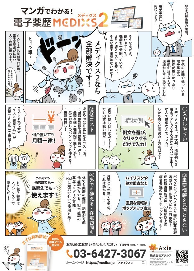 株式会社アクシスは、ネットワーク型電子薬歴「メディクス2」を、2019年6月22日(土)・23日(日)神奈川県横浜市で開催される「アルフレッサメディカルフェア2019横浜」に出展致します