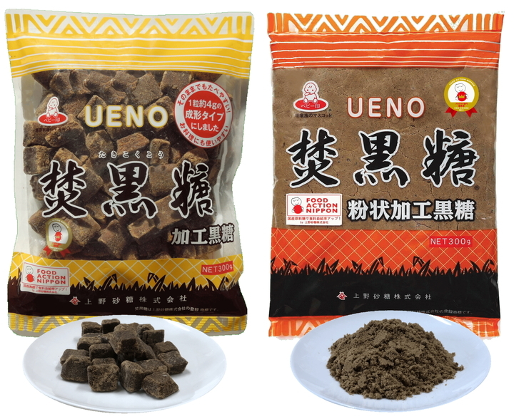 「上野 焚黒糖」は大正2年の創業以来培った伝統の製法で沖縄県産黒糖を主とした黒糖と原料糖をブレンドし、食べやすい美味しい味に仕上げた沖縄県産黒糖を贅沢に使用した加工黒糖です。2011年には沖縄県産黒糖の含有率の高さなどが評価され農林水産省主催の「フード・アクション・ニッポン アワード2011」にてプロダクト部門 優秀賞を受賞。大阪府知事からは“50年以上愛され続ける名品”として「大阪産(もん)名品」にも認定されてされた商品で、平成25年には「大阪産(もん)五つの星大賞」も受賞しております。