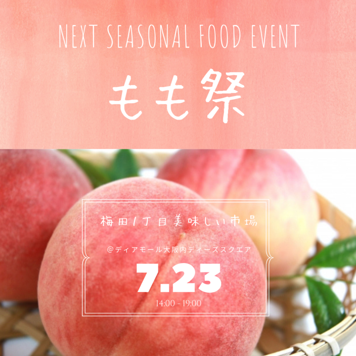 梅田一丁目美味しい市場事務局※1では、JR大阪駅南側の大阪駅前ダイヤモンド地下街(ディアモール大阪)内のイベントスペース「ディーズスクエア」にて、産地から選りすぐりの事業者を集めて「梅田1丁目美味しい市場」(都市型マルシェ)〜桃祭り〜を7月23日(火)14時~19時に開催します。