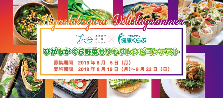 これらの食材の持つ魅力をインスタグラムを活用し、全国に広く知らせるとともに家庭の食事が楽しくなるレシピを提案してくれるデリスタグラマーを「ひがしかぐら野菜もりもりレシピコンテスト」を開催し募集します。