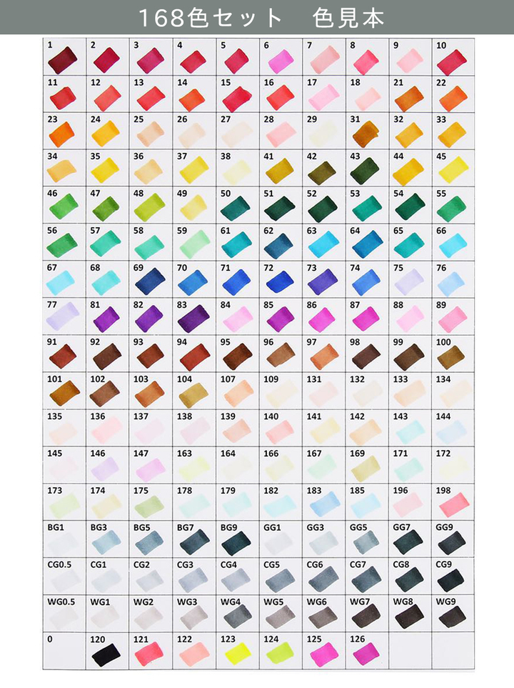 セット内容 :マーカーペン168本、0.3mmライナーペン2本(ブラック・ホワイト)、2way収納ケース、ペンスタンド6個