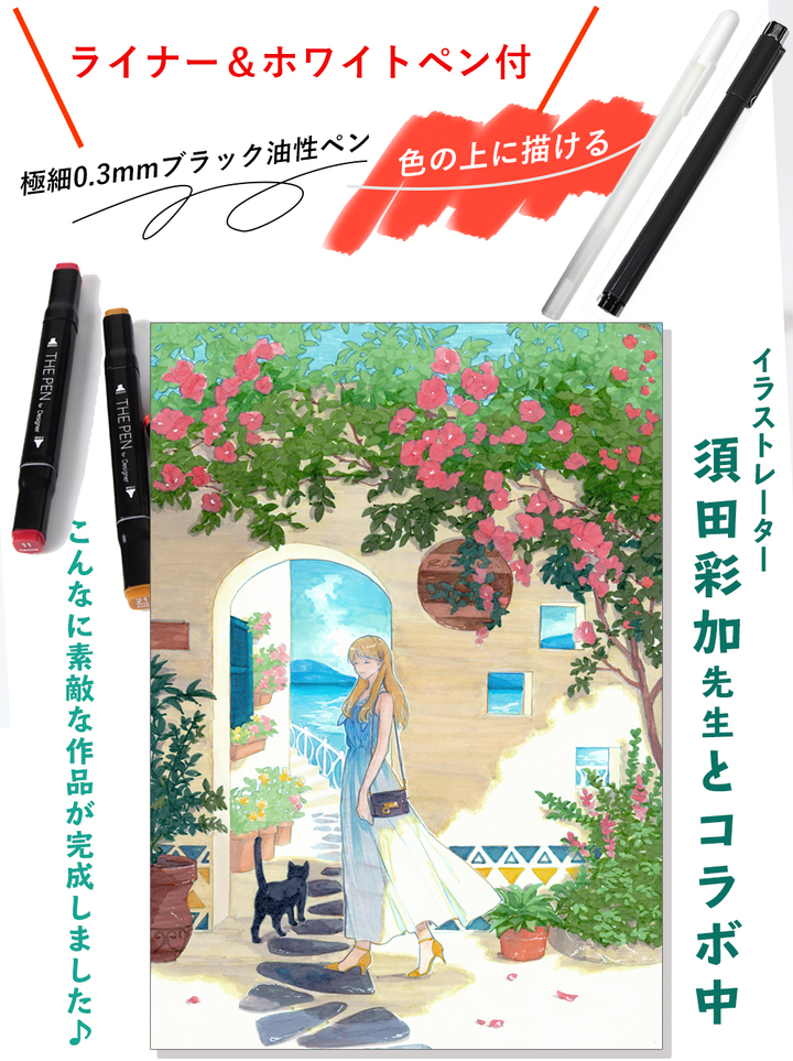 イラストや漫画の作成・彩色はもちろん、アートやデザイン、暑中見舞いの絵手紙・絵はがき作りにピッタリです。お子さんの自由研究や夏休みのワークショップイベントの画材にも!