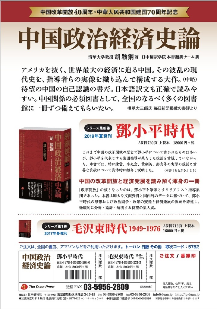 【最新刊のご案内】中国「改革開放」時代を読み解く『中国政治経済史論 鄧小平時代』まもなく発売!