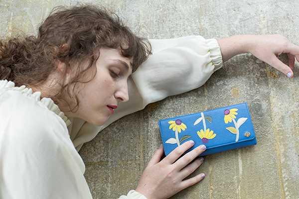 ブランドのアイコンとも言えるのが、「ペタロシリーズ」。レザーの財布本体に、革の花びらを一枚ずつ載せて縫い重ねた、カラフルで華やかな装飾が特徴です。パンジー、カラー、ガーベラ、ポピー、ルドベキアなど、多彩なバリエーションを用意しています。ありきたりなものではなくストーリーのあるモノを好み、可愛さに加えて上質で上品なものを持っていたい、そんな大人世代に向けて作りました。何歳になっても心の中に抱き続ける“乙女の感情”を満足させる、花を持ち歩いているような感覚を味わえるシリーズです。