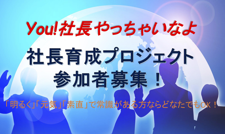 「社長育成プロジェクト」は、明るくて、元気で素直な方であればだれでもエントリー可能です。