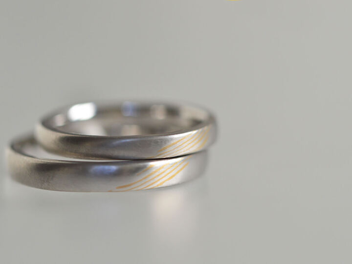 指輪の内外の素材を反転させて作るコンビカラーの結婚指輪。パートナーが選んだ素材を指輪に組み入れることで、お互いのことをいつでも近くに感じることができます。