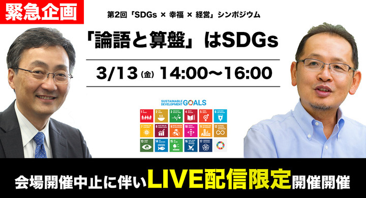 【新型コロナウイルス対策】第2回SDGsx幸福x経営シンポジウム「論語と算盤」はSDGs|会場開催中止およびLIVE配信決定