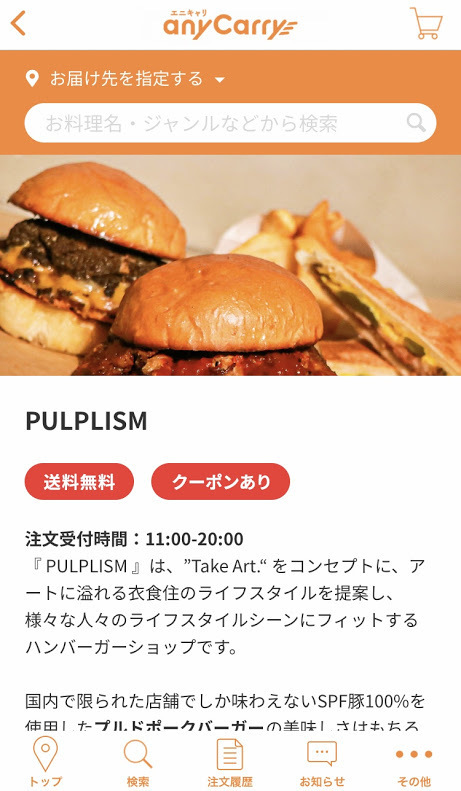 フードデリバリー「エニキャリ」日本で数少ないプルドポークバーガーを提供するお店「PULPLISM」オープンのお知らせ