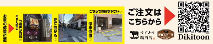 那覇市国際通りのれん街に入居する沖縄ステーキ/みずとみ精肉店を運営する株式会社ハンズオンカンパニー(沖縄県那覇市、市川哲代表取締役)は18日、沖縄タイムス社(沖縄県那覇市、武富和彦代表取締役社長)が試験運用中のスマホ注文サービスDikitoon.com(ディキトーン・ドットコム)を活用して、BBQセットのドライブスルー販売を始めました。