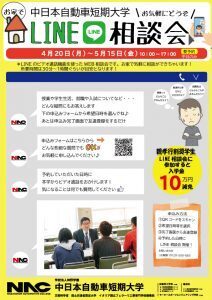 自動車整備士養成校の、学校法人神野学園 中日本自動車短期大学(所在地:岐阜県関市、学長:山田弘幸)は、新型コロナウィルス感染拡大対策による休校措置を受けた高校生を対象としたLINE相談会とWEBオープンキャンパスを、2020年4月20日(月)より開始しました。
