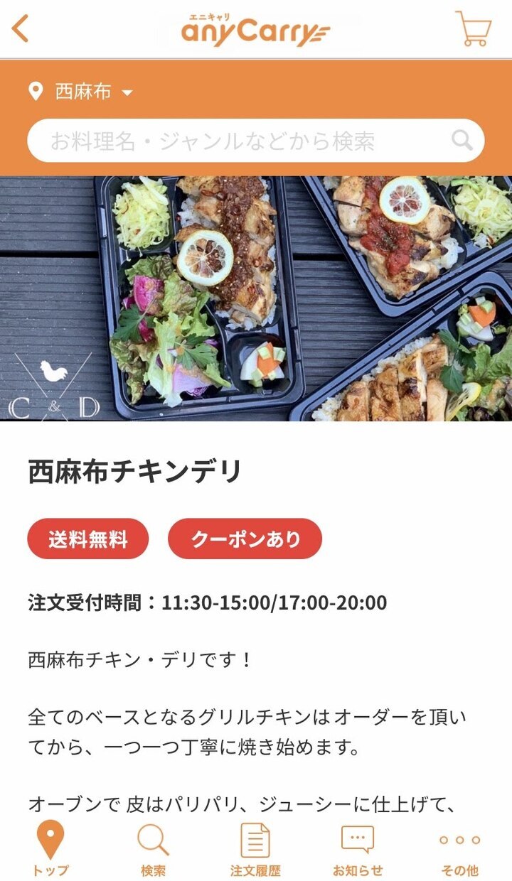 シェアリングプラットフォーム運営企業である株式会社エニキャリ(東京都港区)は、高タンパク、低カロリー「西麻布チキン・デリ」が、フードデリバリーサイト「エニキャリ(anyCarry)」に新規オープンしたことをご報告します。より手軽により便利によりお得にヘルシーグリルチキンが出前でご自宅・職場にてお楽しみ頂けるようになりました。