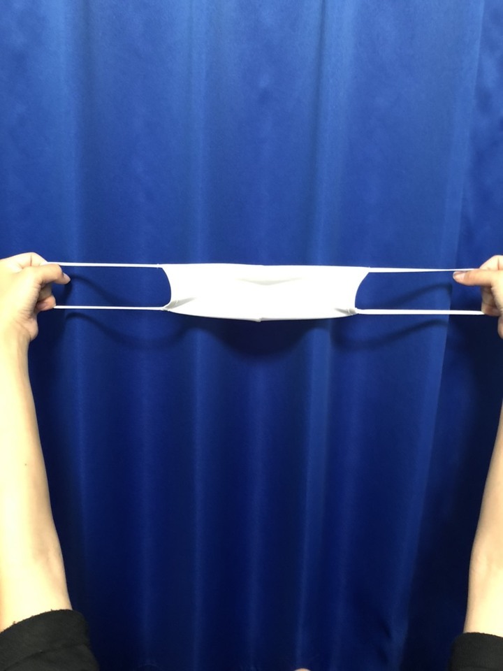 マスクはスポーツウェアにも使用される素材を使用し、伸縮性があり扱いやすく、洗濯機で何度でも洗って使用する事が可能。