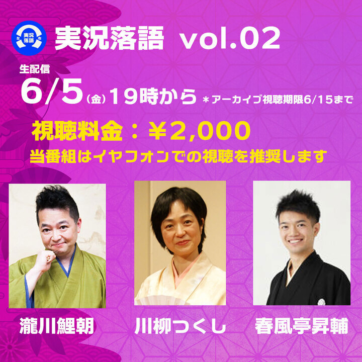 ステレオ音声を利用して、新感覚の落語番組「実況落語」を6月5日(金)19時よりインターネット配信を行います。