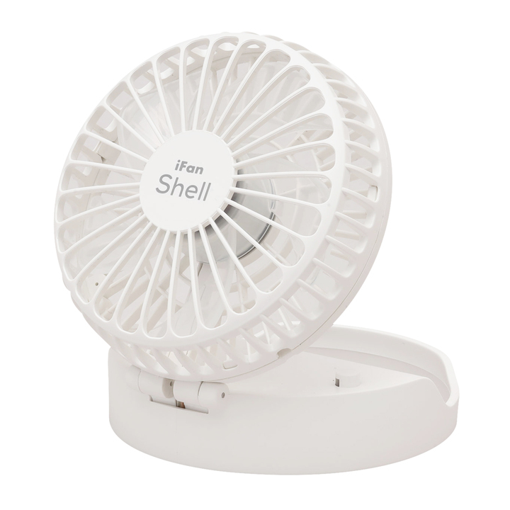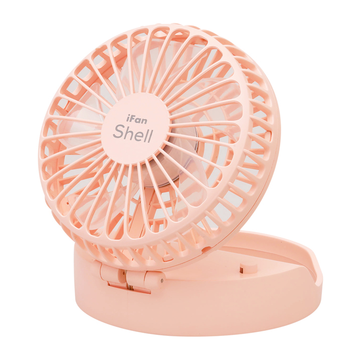 「iFan Shell L」は、首からさげて手ぶらで使える充電式パーソナル扇風機です。ヘッド部分が無段階で自由な角度に調整可能で、涼しい風を好きな場所に送れます。ブラッシュレスモーター搭載、独自設計の羽根で静かながら、最大4.2m/秒のパワフルな風を実現しました。ON/OFFを繰り返すリズム風運転は体を冷やし過ぎたくない時にお勧めの機能です。