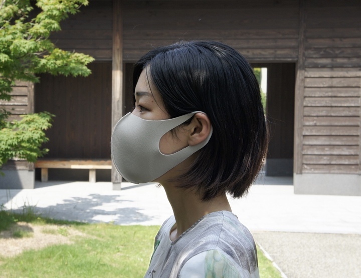 高密度でストレッチに優れる生地とこだわりのパターンによって、皆様のお顔にフィットして快適なつけ心地を目指しました。生地の持つハリ感によって口元とマスクの間に適度な空間が生まれ、呼吸や会話がしやすくなっています。